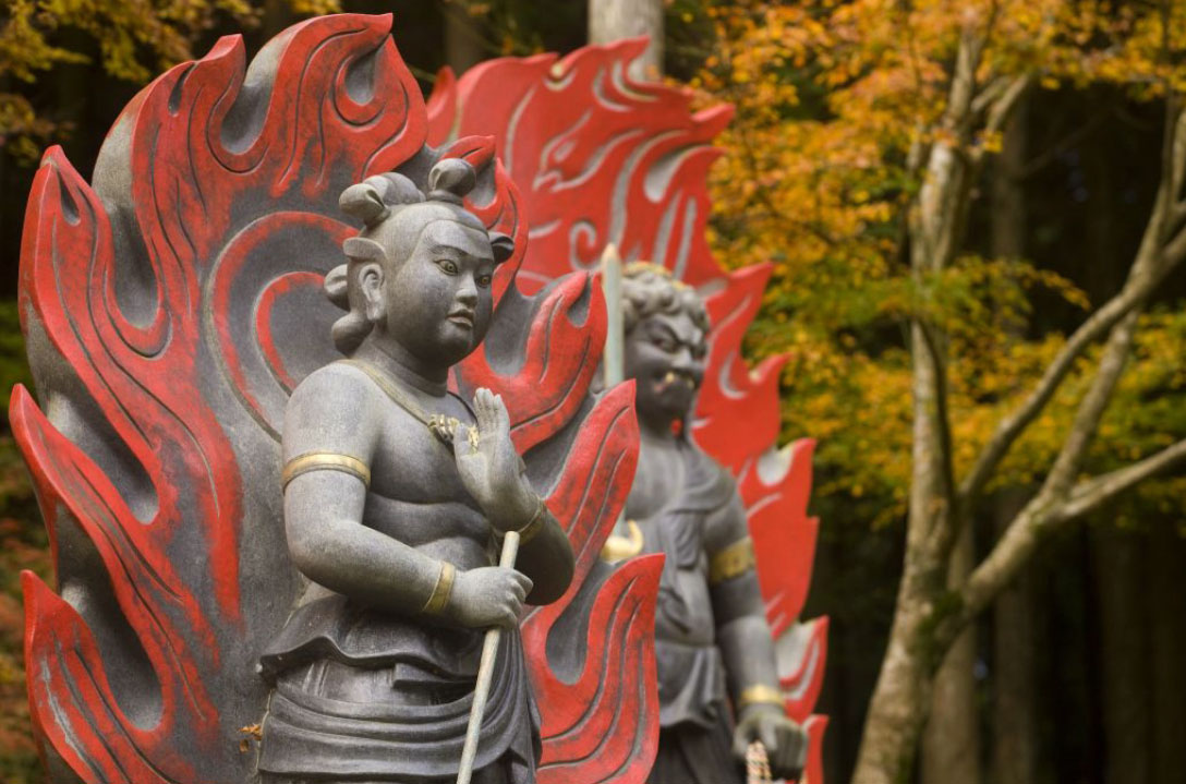 不動明王の眷属で、手には独鈷所を持ち、八大童子、三十六童子の長として仏法を守護する不動明王の命を受け制多迦と共に3尊として現わされる。