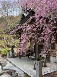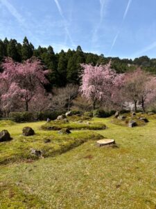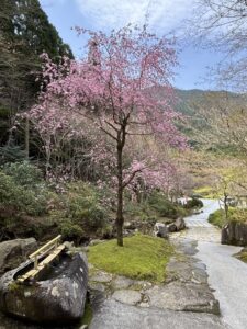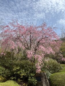 庭園内の枝垂れ桜が見頃を迎えております。